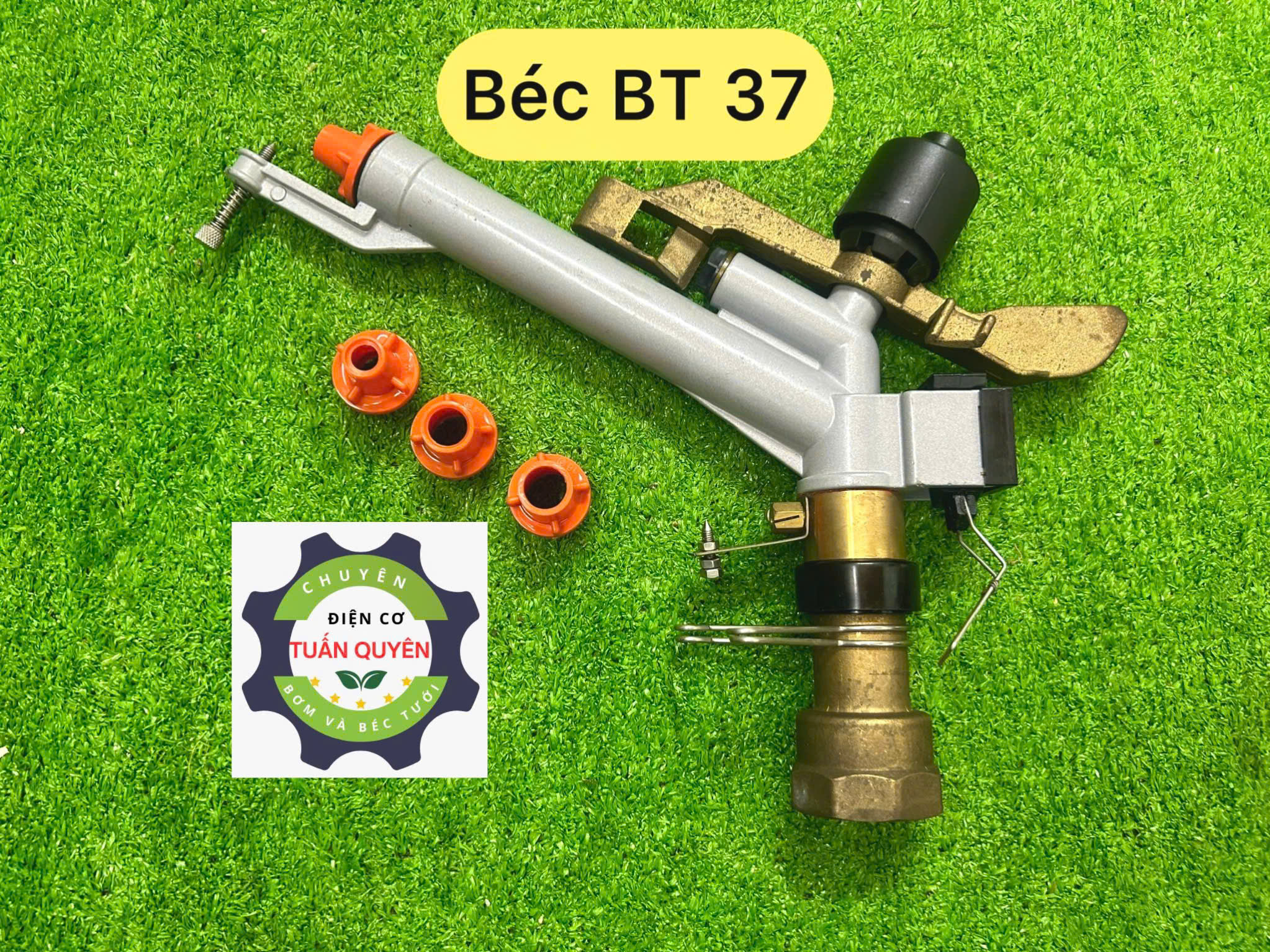 - Béc BT37 là béc tưới gắn ống ren 49 có 3 tia nước tưới phun mưa rất đẫm và đều nước, có thể chỉnh góc