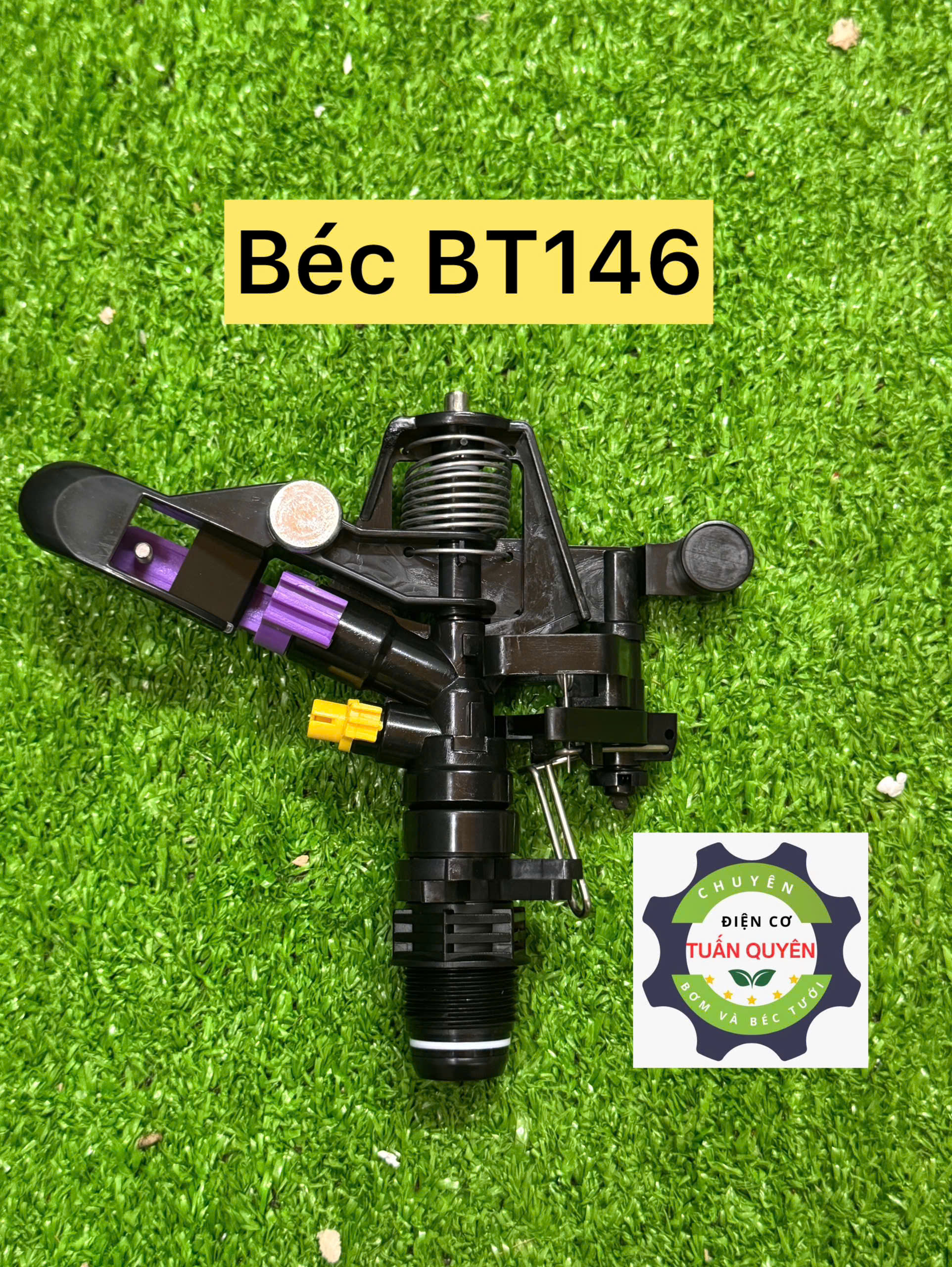 - Béc tưới BT146 – Béc tưới nhựa ren 27, phù hợp cho bơm 0.5 HP trở lên với bán kính 8- 16m tưới cực đẫm và đều.