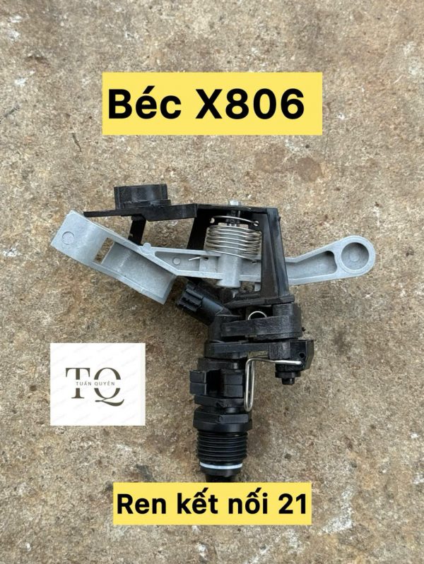 Béc tưới X806 được thiết kế bằng nhựa , cốt bằng inox, ren kết nối 21 với bán kính 5-8m, phù hợp cho bơm 0.5HP trở lên dùng tưới rau,hoa màu,….